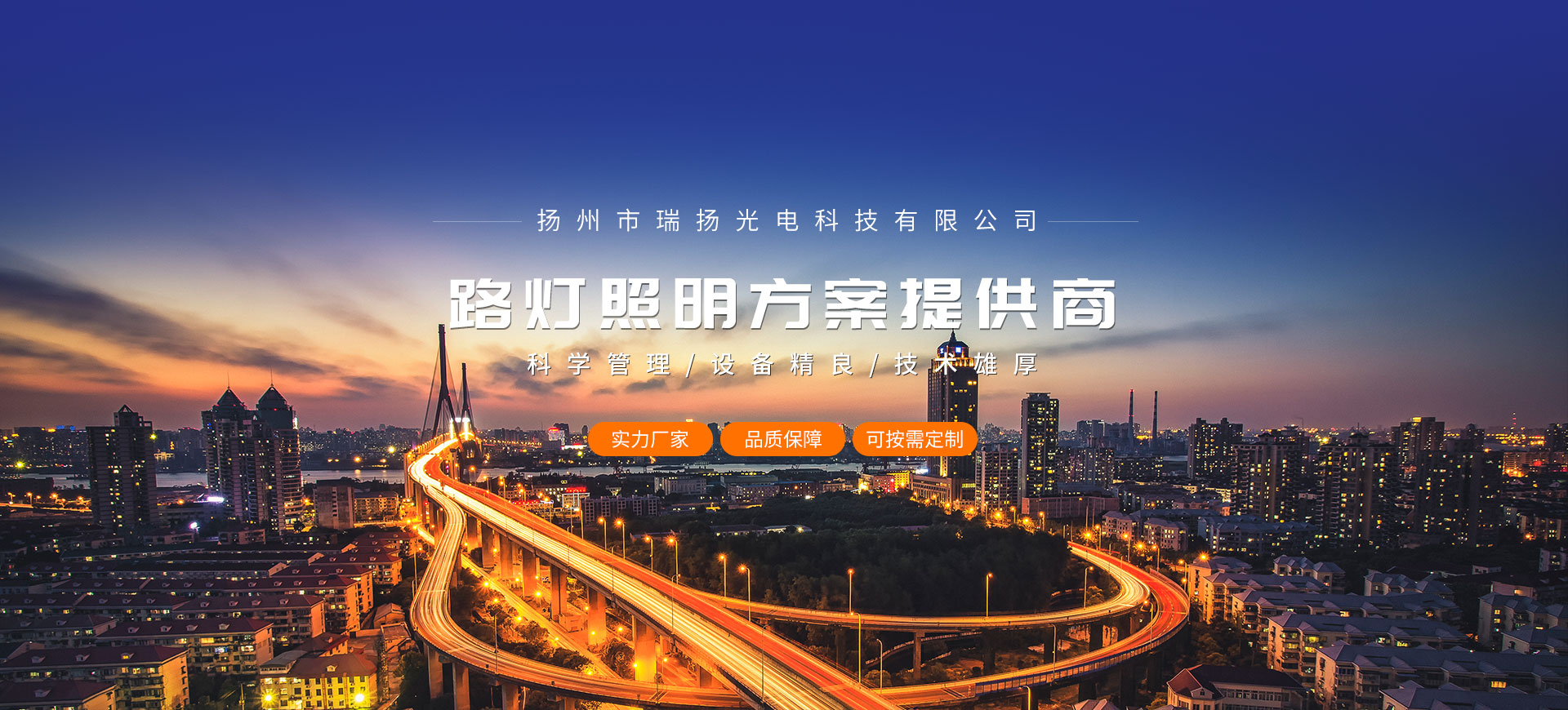 揚州瑞揚光電科技有限公司座落在中國歷史文化名城揚州北郊郭集工業園。本廠占地面積約5000多平方米,建筑面積2800平方米,固定資產與流動資本共1500多萬元。工廠備有15m×壓力1200噸大型折彎機,配套高速縱剪機、沖床、車床、刨床、半自動埋弧焊機、焊接探傷設備、等離子切割機、合縫機、校直機以及多種適應鋼結構錐型路燈、高桿燈、中小桿、交通標志桿、通訊桿等制作的必備機械,計30余臺。企業注重人才招入使用與培養:在職員工150多人,專門從事燈桿、燈具研究、制作的高工就有10人。  企業還備有多套鋁金屬壓鑄模具,生產制造多種式樣的室外照明燈具,本企業擁有多項專利產品。制作精密不銹鋼燈桿、庭院、草坪用燈具、廣場照明用豪華燈具則是本企業重要經營范圍。除外,本企業自主研發的新型大功率LED燈具、太陽能發電系統正在陸續推向市場。       公司主要產品有高桿燈、組合燈、道路燈、太陽能燈、LED燈具系列、庭院燈、草坪燈、煙花燈、泛光燈、噴泉、雕塑、交通信號燈等,以及配套使用的鎮流器、觸發器、光控、時控開關箱等。??我們本著“高質量、高信譽、用戶至上”的宗旨;“以質量求生存、向管理要效益”的信條,竭誠為新老客戶提供周到的服務。站在新世紀的起跑線上,機遇與挑戰并存。本公司將繼續以市場為導向,依靠科技創造新世紀的輝煌。      我們將和過去一樣,視今天的質量為明天的市場,后天的利潤,為您提供滿意的產品,為美化我們的城鄉做出貢獻。